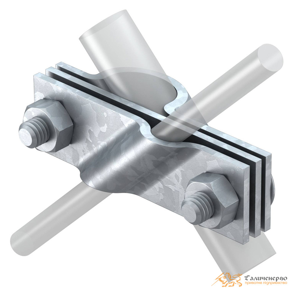Застосовується для з'єднання з круглими провідниками Rd 8-10 або плоскими провідниками до FL40, з проміжною пластиною та з 2 шестигранними болтами M10x30 і 2 шестигранними гайками M10.